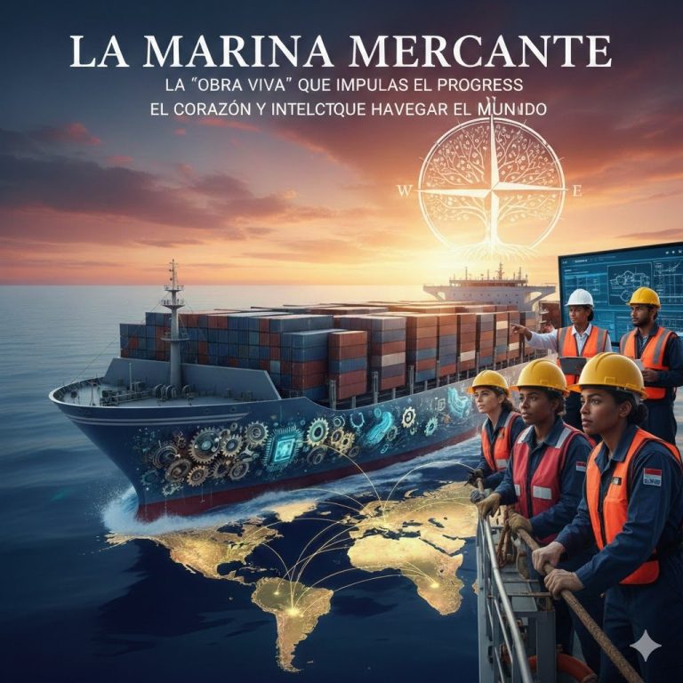 La Marina Mercante constituye el motor y el alma de nuestra civilizacion ; es la "Obra Viva", a menudo invisible al los ojos del mundo, que sumergida en su complejidad sostiene el peso económico global.